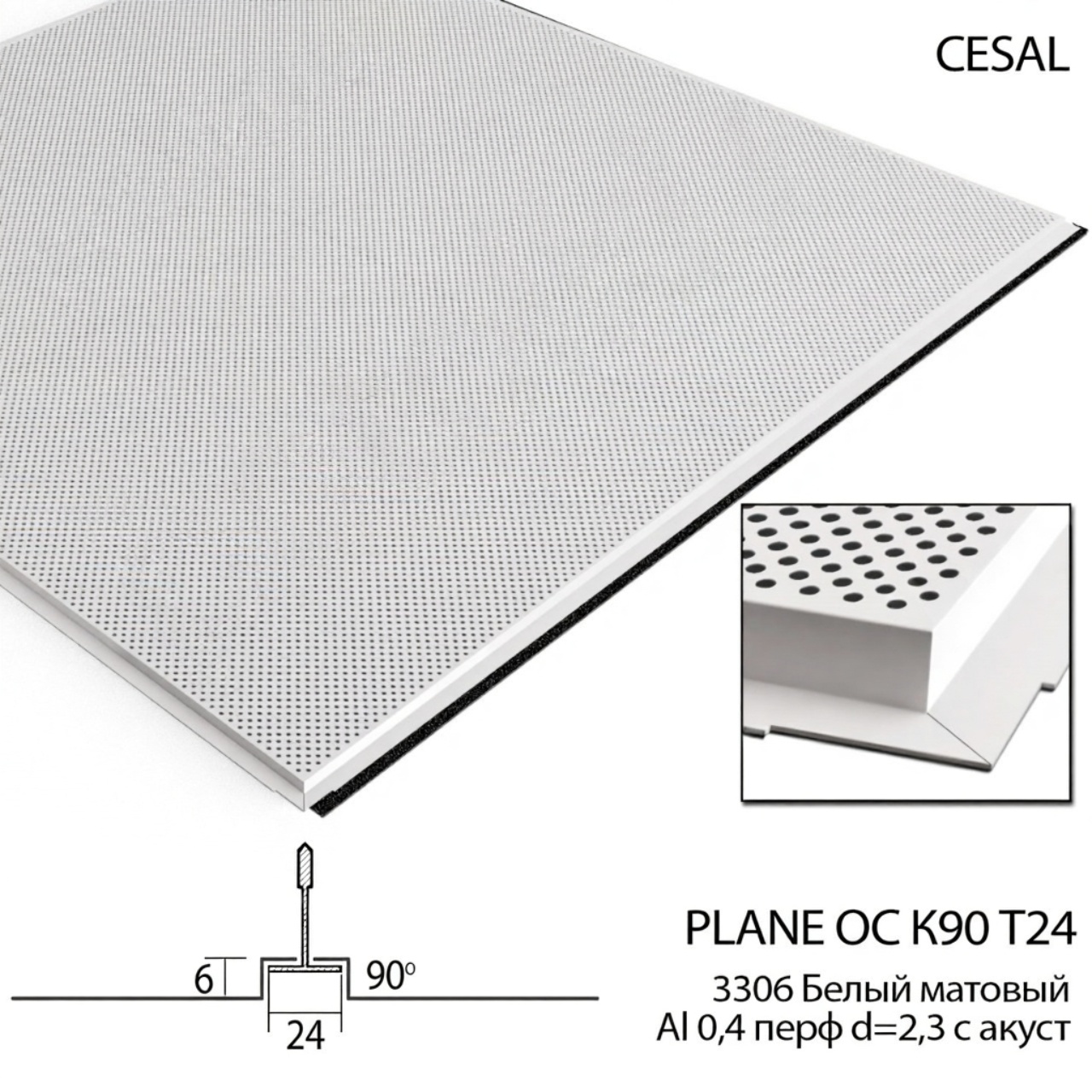 Модульный элемент (кассета) ОС К45 Т-24 3306 белый матовый Al 0,3 Profi (а)