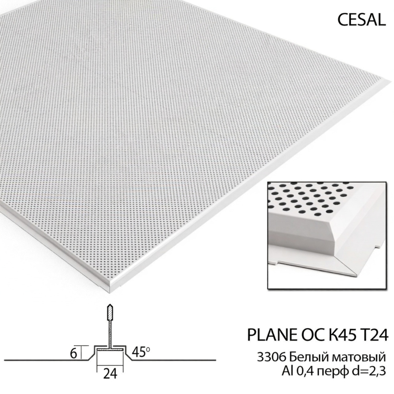 Модульный элемент (кассета) ОС К45 Т-24 3306 белый матовый Al 0,4 перф d=2,3 (в)-1